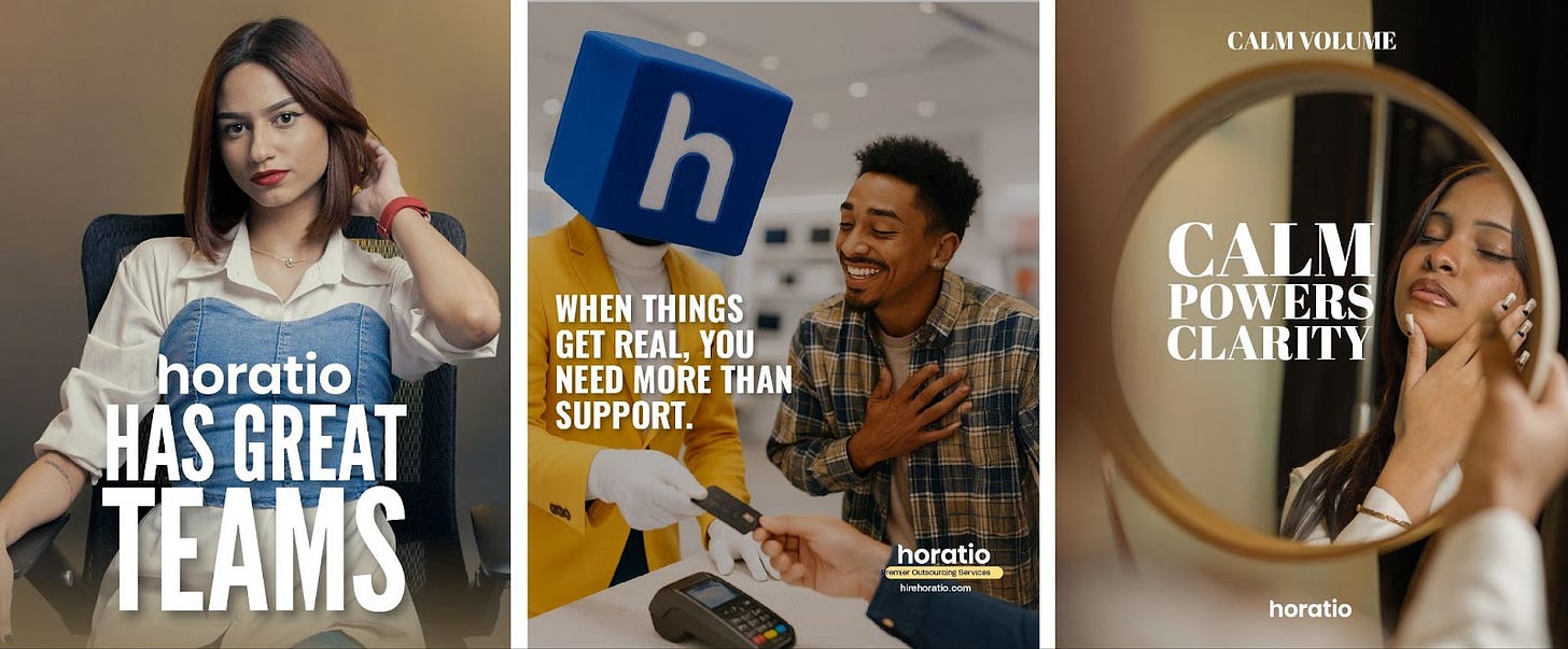 And then from playful to spicy, Horatio went full bold with a mock campaign inspired by American Eagle’s “Sydney Sweeney has great jeans.” The result? Horatio Has Great Teams — a cheeky, fearless statement that outsourcing can look good, feel fun, and still deliver world-class results. (see it here)