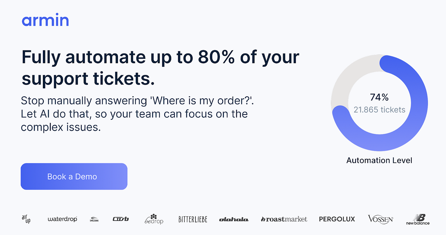 1️⃣ Tickets that resolve themselves. ArminCX’s AI reads the customer’s message pulls the order number, checks shipping status in your backend, grabs the tracking link, and sends a complete reply. Brands are seeing 50-80% of tickets fully automated.